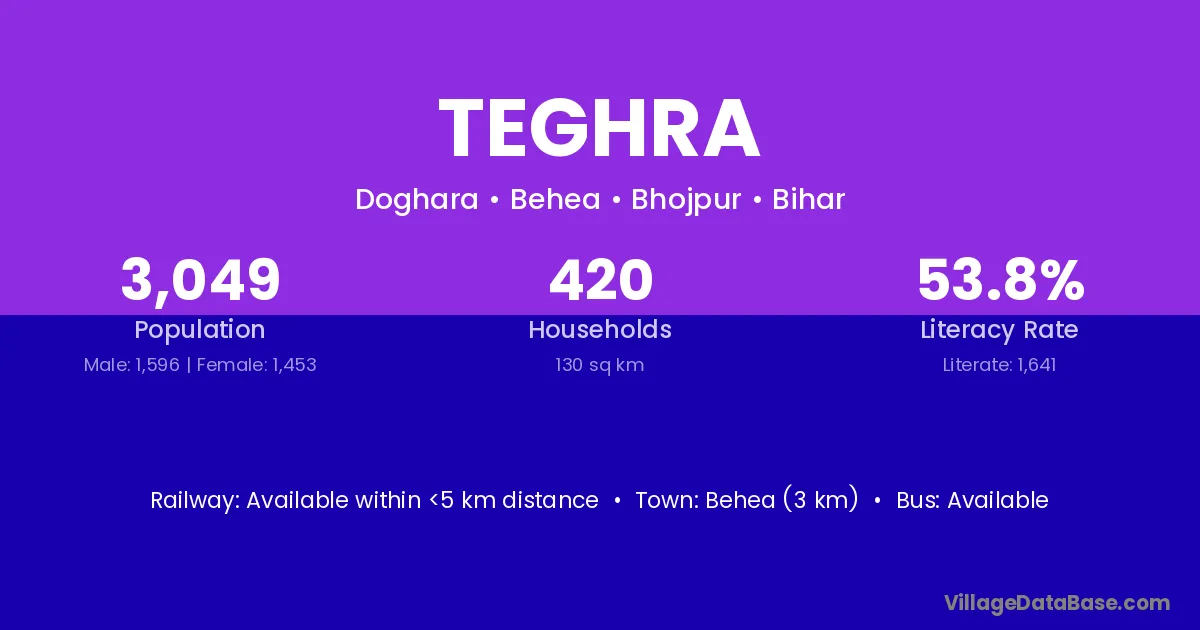 Kharagpur (4 km) is the nearest town to Teghra village for major economic activities and is located approximately 4 km away.