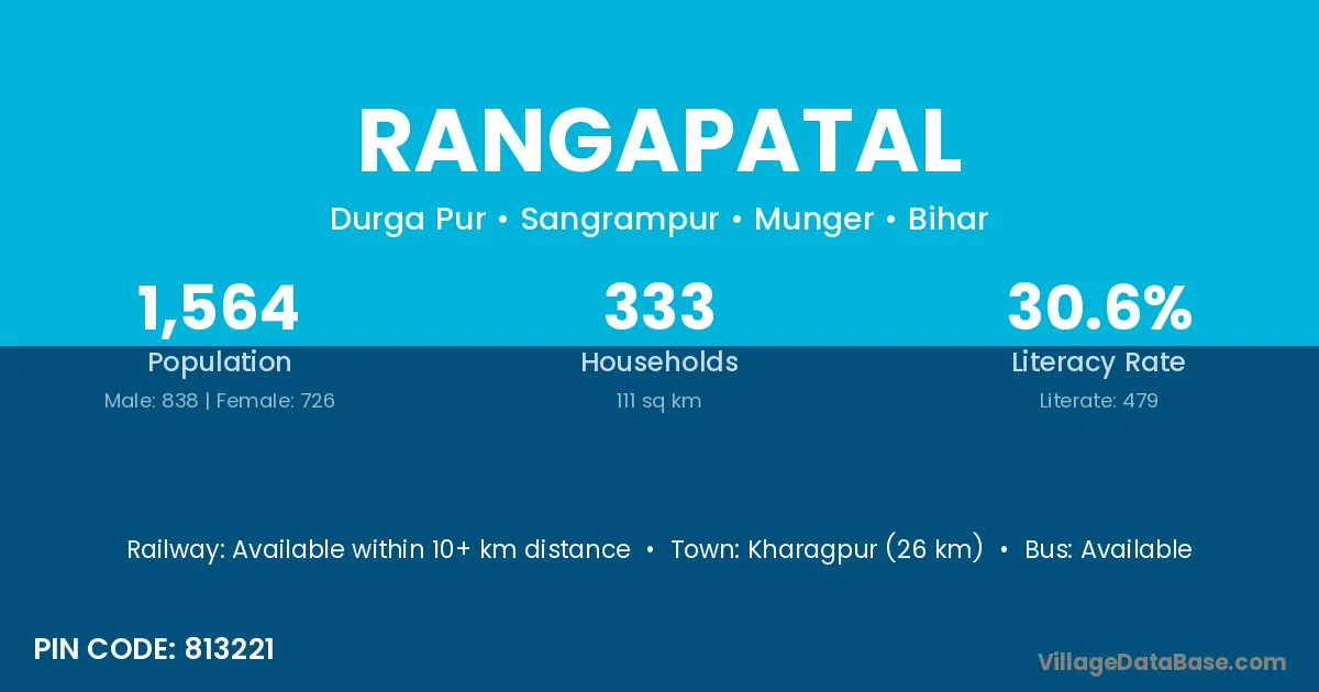 Kharagpur (26 km) is the nearest town to Rangapatal village for major economic activities and is located approximately 26 km away.