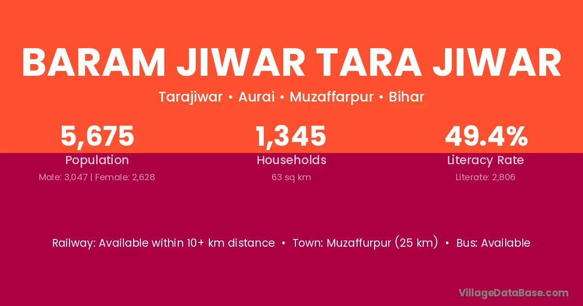 Baram Jiwar Tara Jiwar village has a total population of 5,675 people, of which 3,047 are males and 2,628 are females.