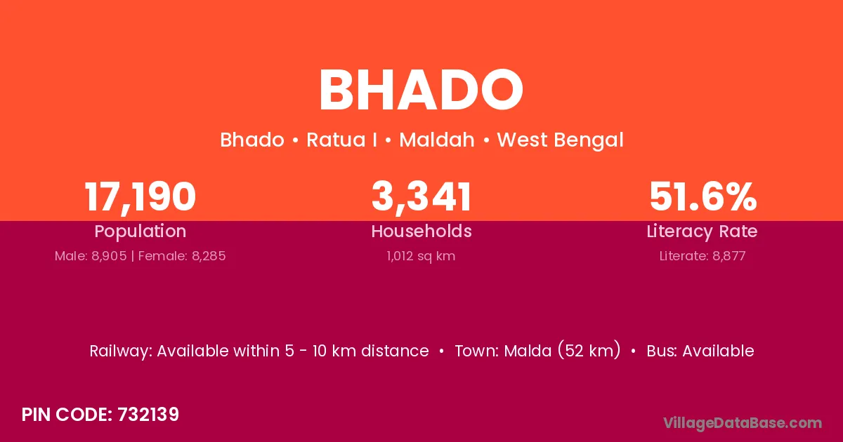 Muzaffurpur (30 km) is the nearest town to Bhado village for major economic activities and is located approximately 30 km away.