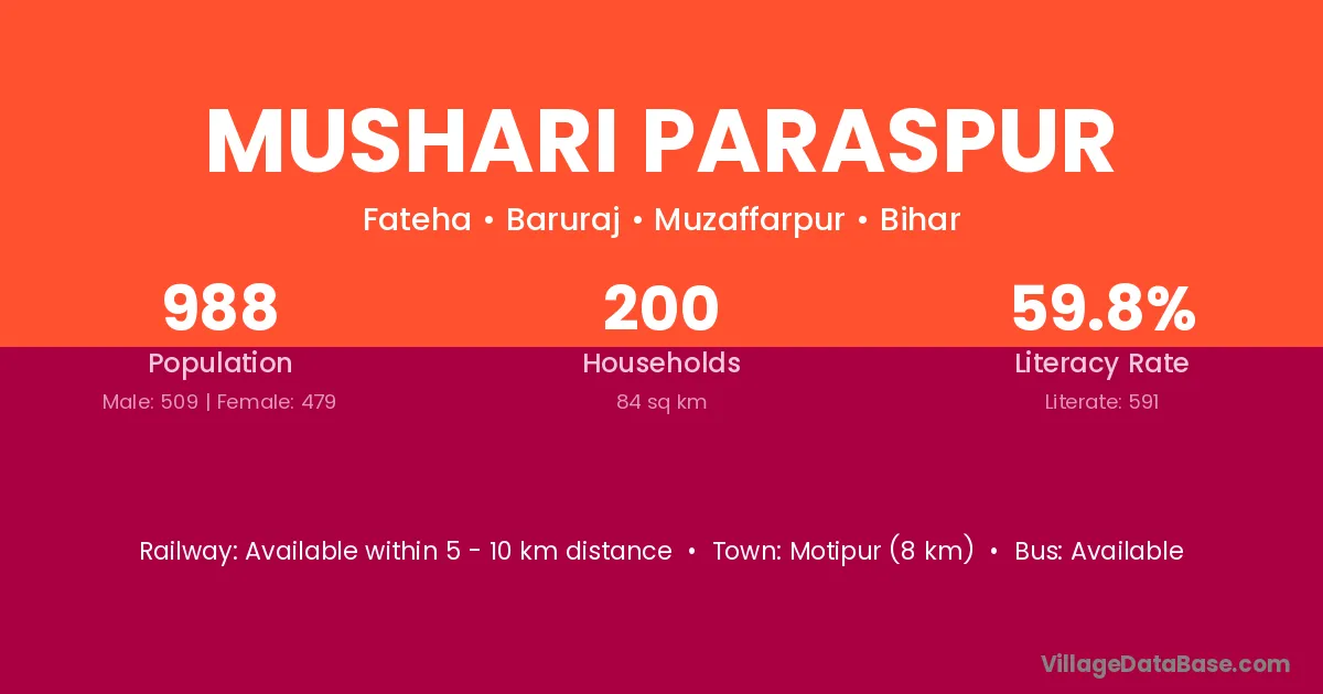 Mushari Paraspur village has a total population of 988 people, of which 509 are males and 479 are females.