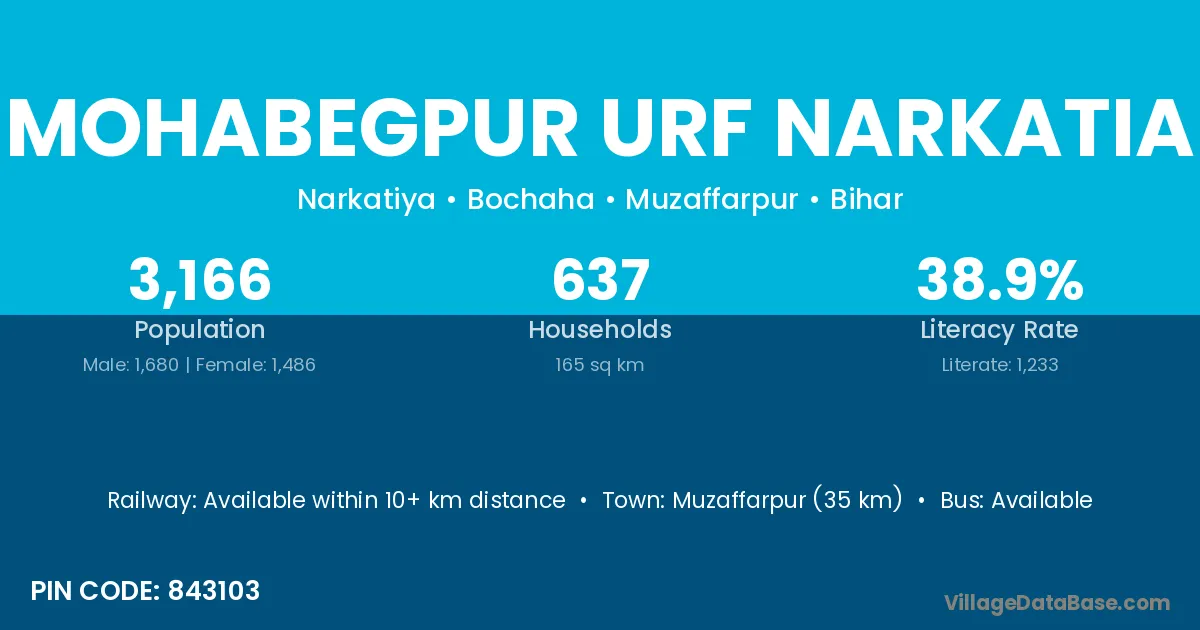 There are approximately 637 households in Mohabegpur Urf Narkatia village.