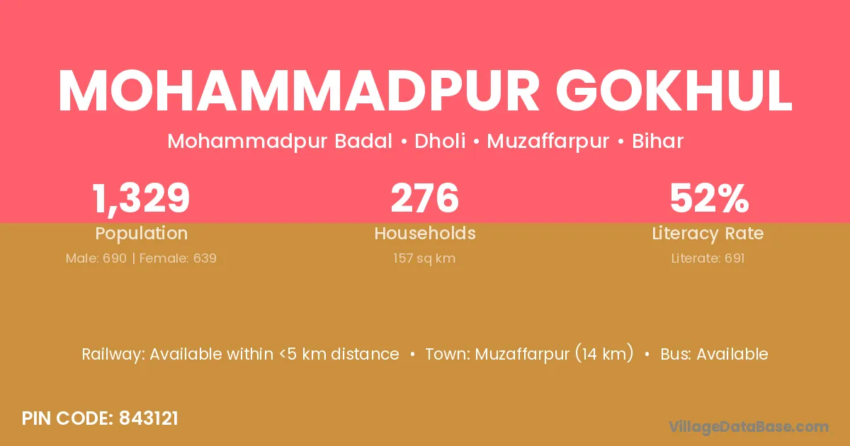 Mohammadpur Gokhul village is located in the Dholi Subdivision of the Muzaffarpur district in Bihar .