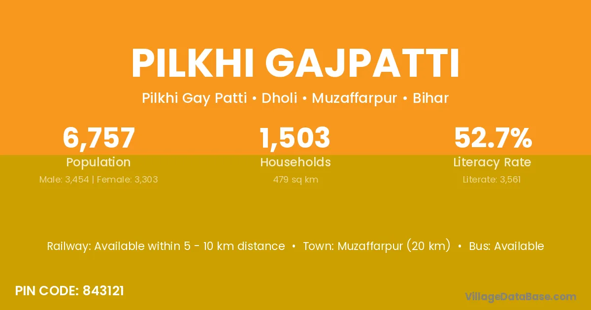 Muzaffarpur (20 km) is the nearest town to Pilkhi Gajpatti village for major economic activities and is located approximately 20 km away.