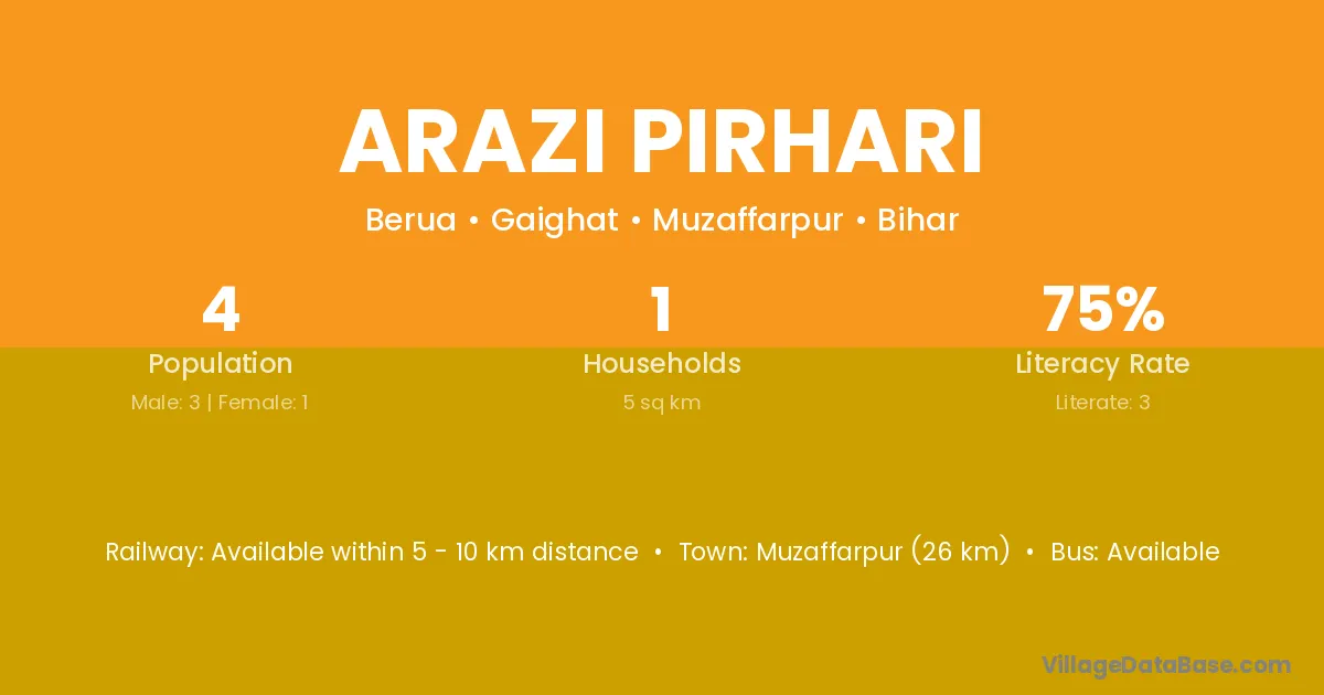 Arazi Pirhari village has a total population of 4 people, of which 3 are males and 1 are females.