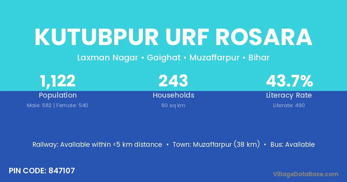Kutubpur Urf Rosara village has a total population of 1,122 people, of which 582 are males and 540 are females.
