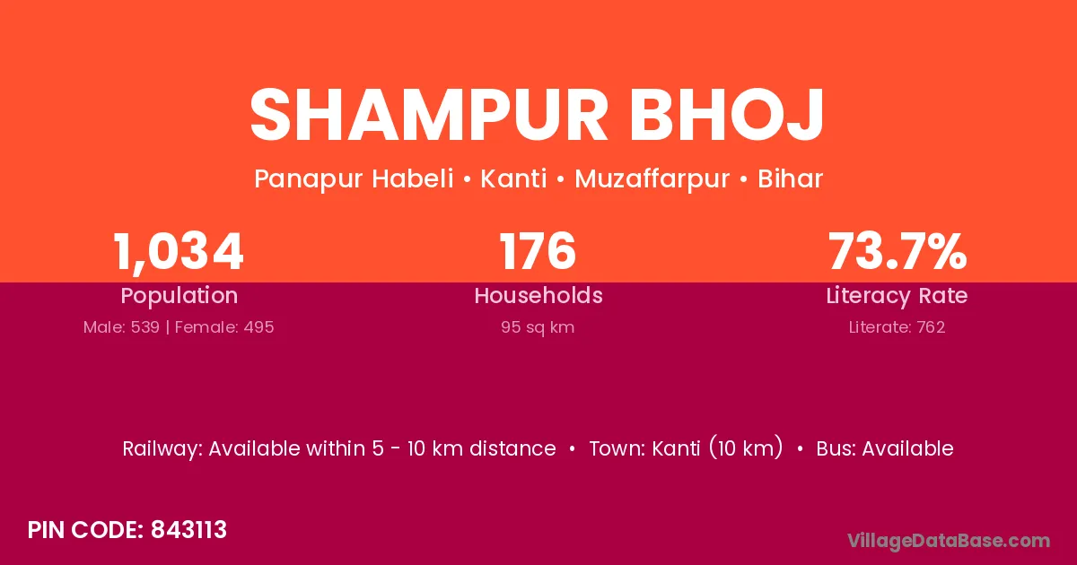Kanti (10 km) is the nearest town to Shampur Bhoj village for major economic activities and is located approximately 10 km away.