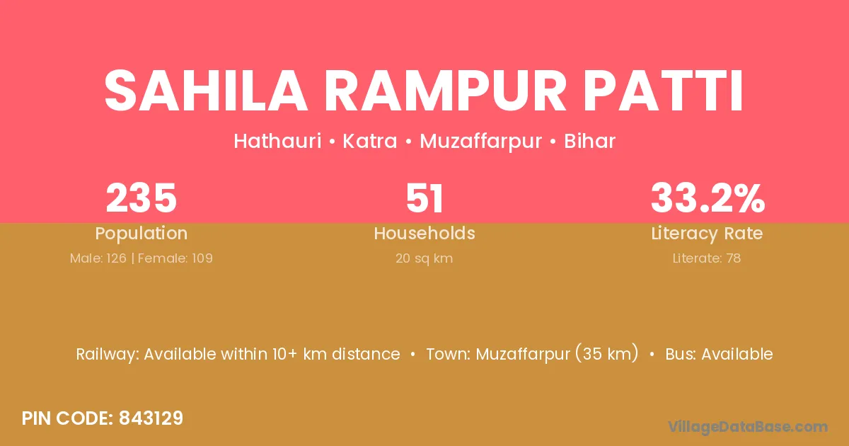 Sahila Rampur Patti village has a total population of 235 people, of which 126 are males and 109 are females.