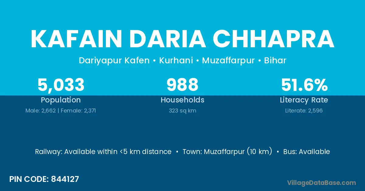 There are approximately 988 households in Kafain Daria Chhapra village.
