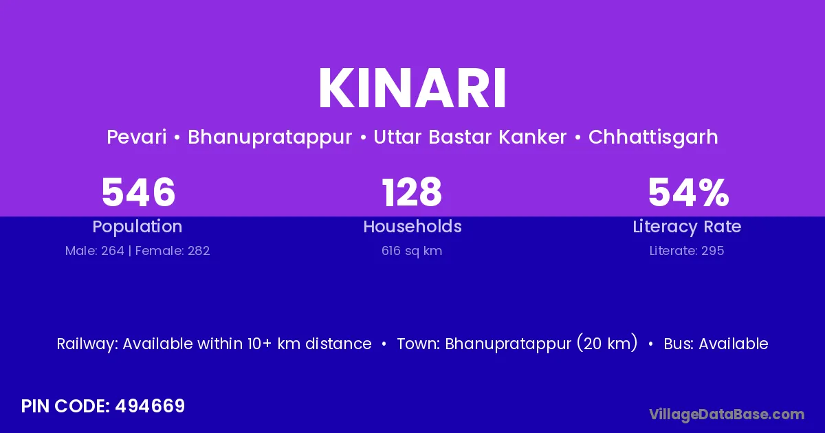 According to Census 2011 information, the village code of Kinari village is 844120.