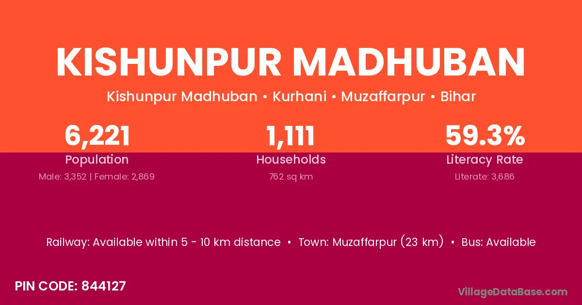 Muzaffarpur (23 km) is the nearest town to Kishunpur Madhuban village for major economic activities and is located approximately 23 km away.