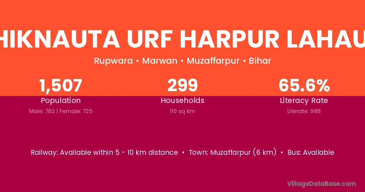 Chiknauta Urf Harpur Lahauri village has a total population of 1,507 people, of which 782 are males and 725 are females.