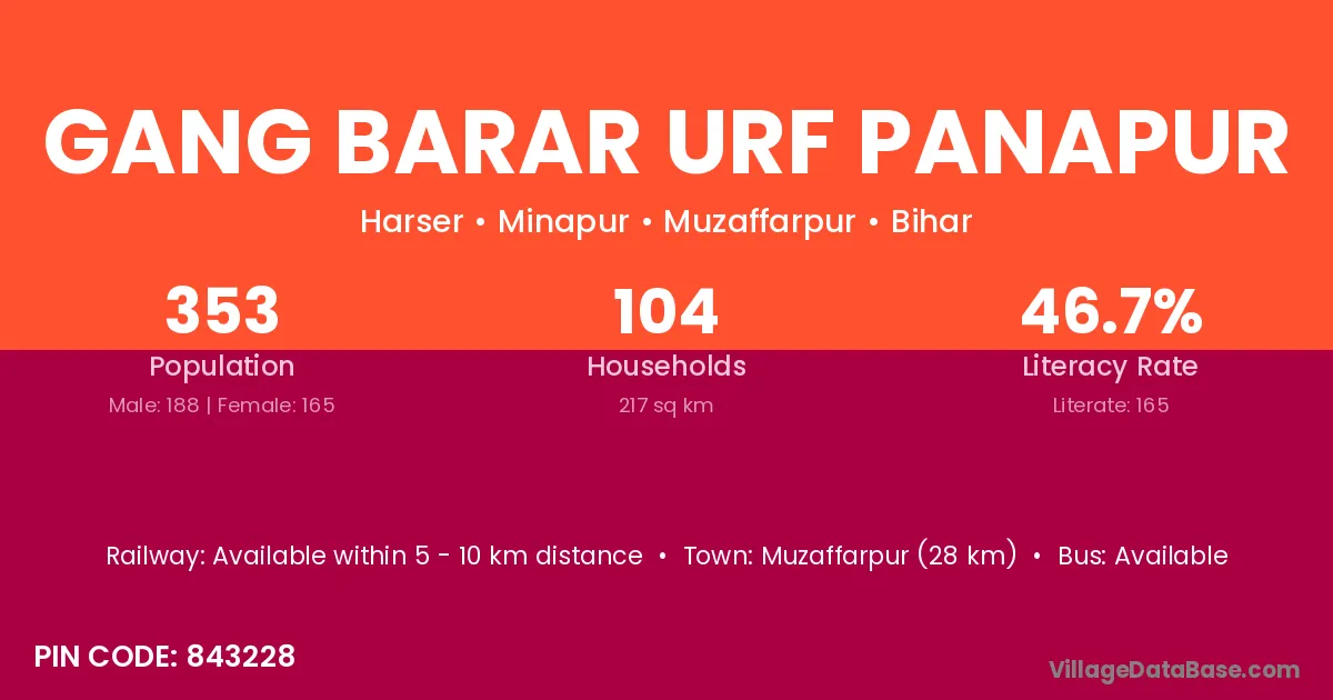 Gang Barar Urf Panapur village has a total population of 353 people, of which 188 are males and 165 are females.