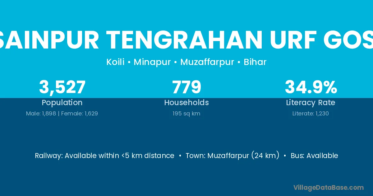Muzaffarpur (24 km) is the nearest town to Gosainpur Tengrahan Urf Gosain village for major economic activities and is located approximately 24 km away.