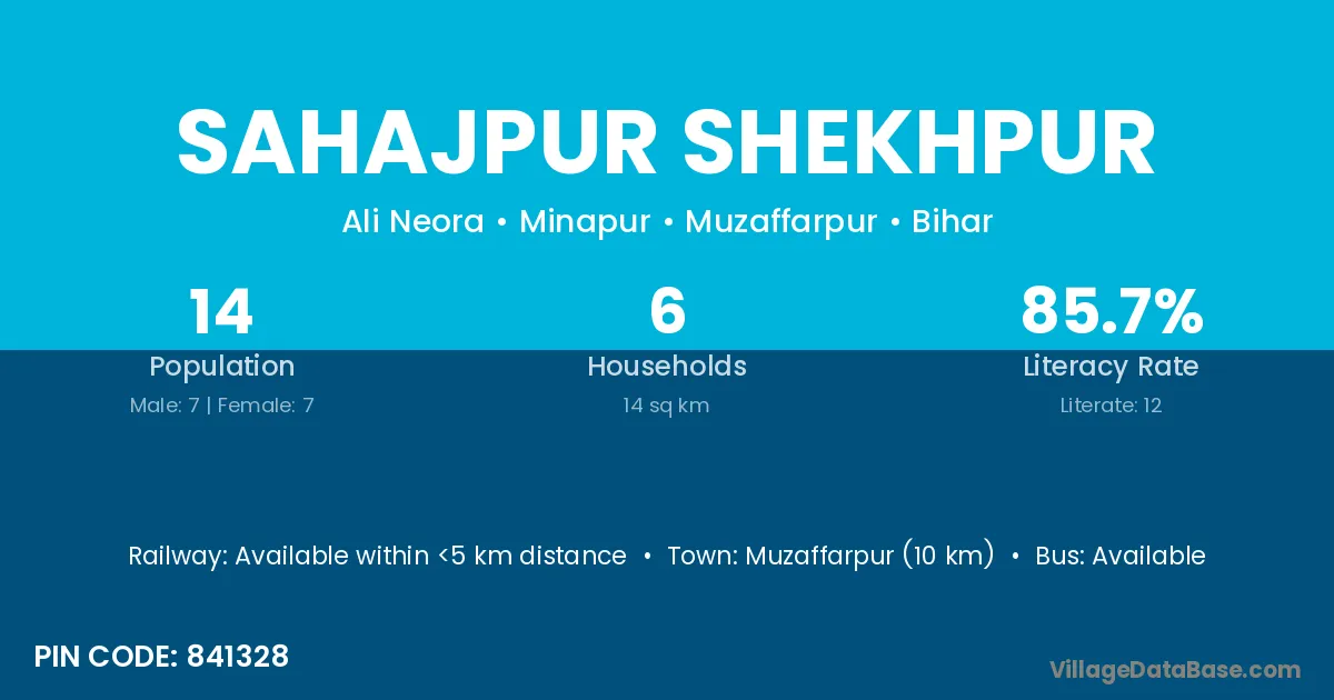 Sahajpur Shekhpur village has a total population of 14 people, of which 7 are males and 7 are females.