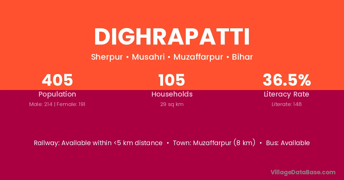 Dighrapatti village has a total population of 405 people, of which 214 are males and 191 are females.