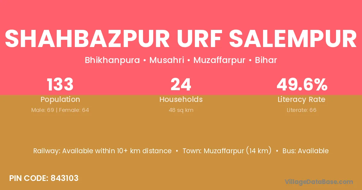 Shahbazpur Urf Salempur village has a total population of 133 people, of which 69 are males and 64 are females.
