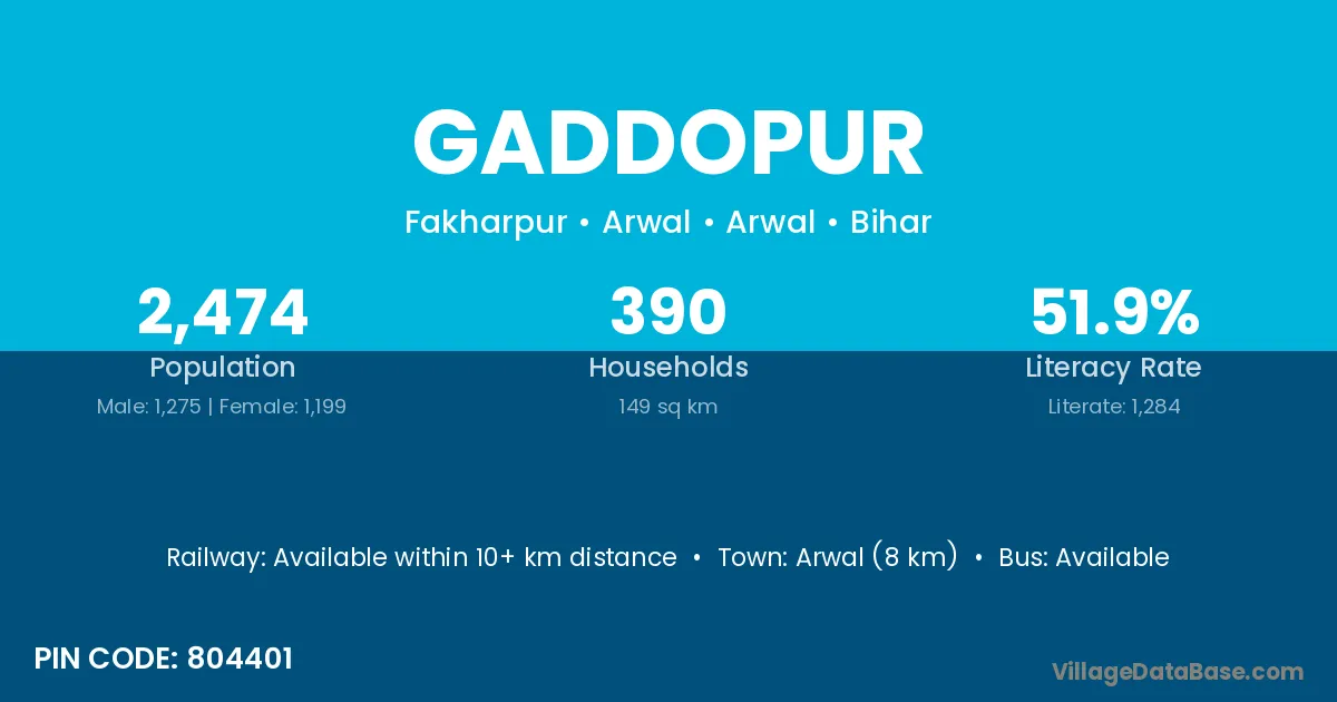 Muzaffarpur (45 km) is the nearest town to Gaddopur village for major economic activities and is located approximately 45 km away.