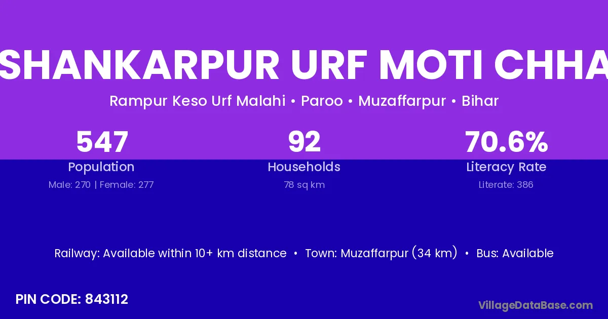 Harshankarpur Urf Moti Chhapra village has a total population of 547 people, of which 270 are males and 277 are females.