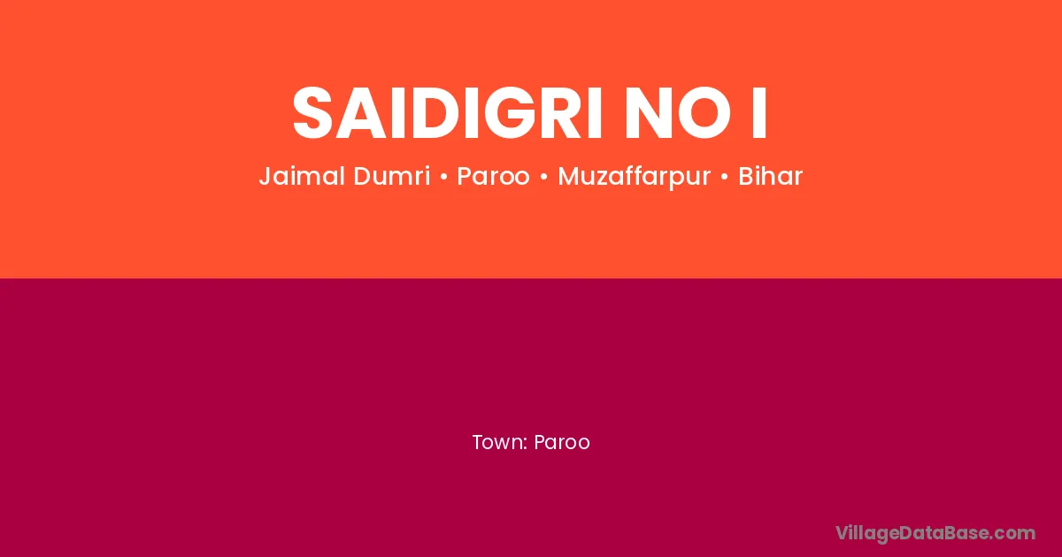 Saidigri No I village is located in the Paroo Subdivision of the Muzaffarpur district in Bihar .
