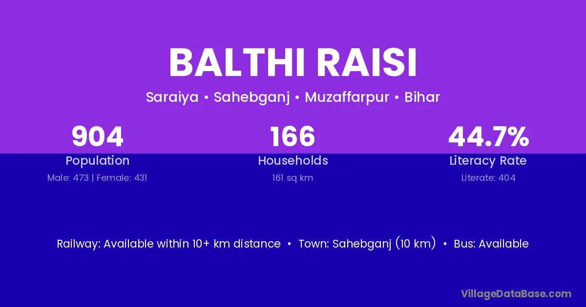 Sahebganj (10 km) is the nearest town to Balthi Raisi village for major economic activities and is located approximately 10 km away.