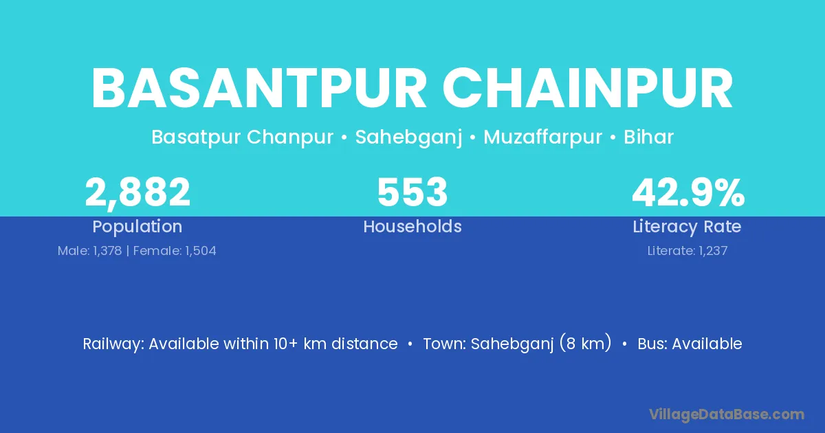 Sahebganj (8 km) is the nearest town to Basantpur Chainpur village for major economic activities and is located approximately 8 km away.