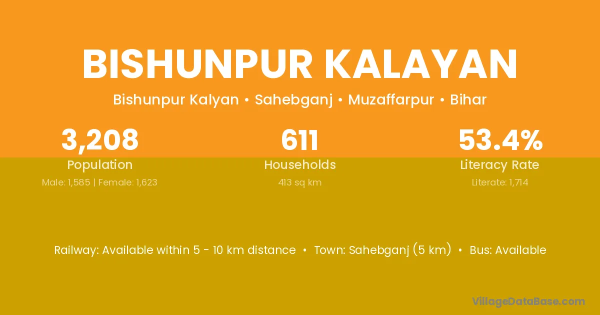 Sahebganj (5 km) is the nearest town to Bishunpur Kalayan village for major economic activities and is located approximately 5 km away.