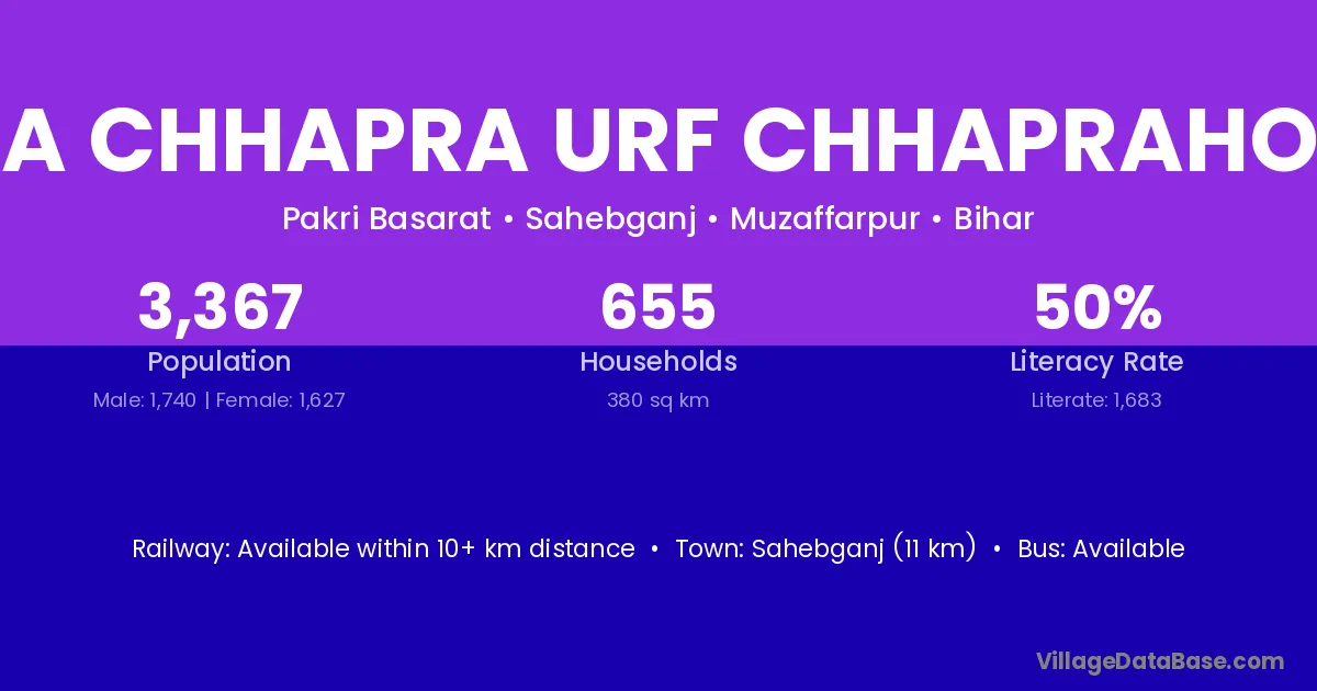 Sahebganj (11 km) is the nearest town to Jita Chhapra Urf Chhaprahoril village for major economic activities and is located approximately 11 km away.
