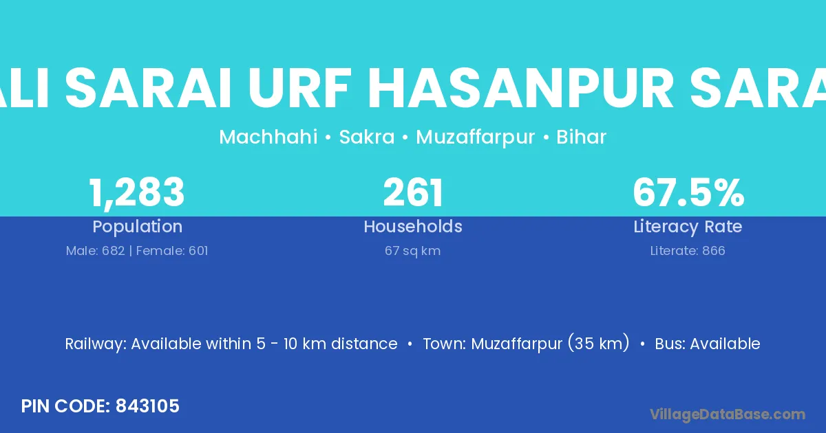 According to Census 2011 information, the village code of Ali Sarai Urf Hasanpur Sarai village is 843105.