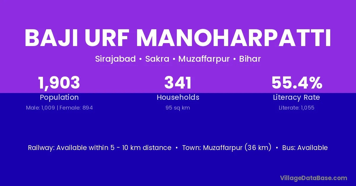 Baji Urf Manoharpatti village has a total population of 1,903 people, of which 1,009 are males and 894 are females.