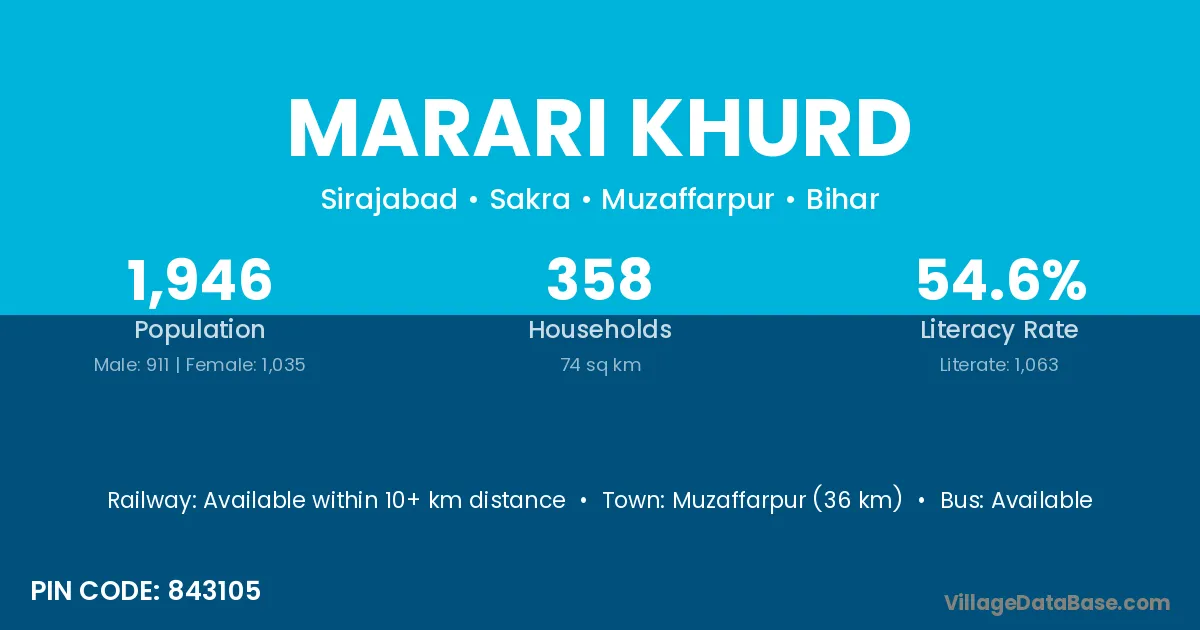 Muzaffarpur (36 km) is the nearest town to Marari Khurd village for major economic activities and is located approximately 36 km away.