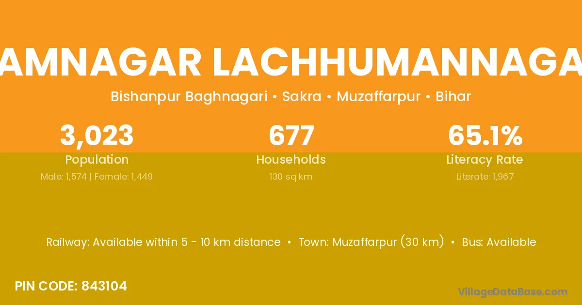 According to Census 2011 information, the village code of Ramnagar Lachhumannagar village is 843104.
