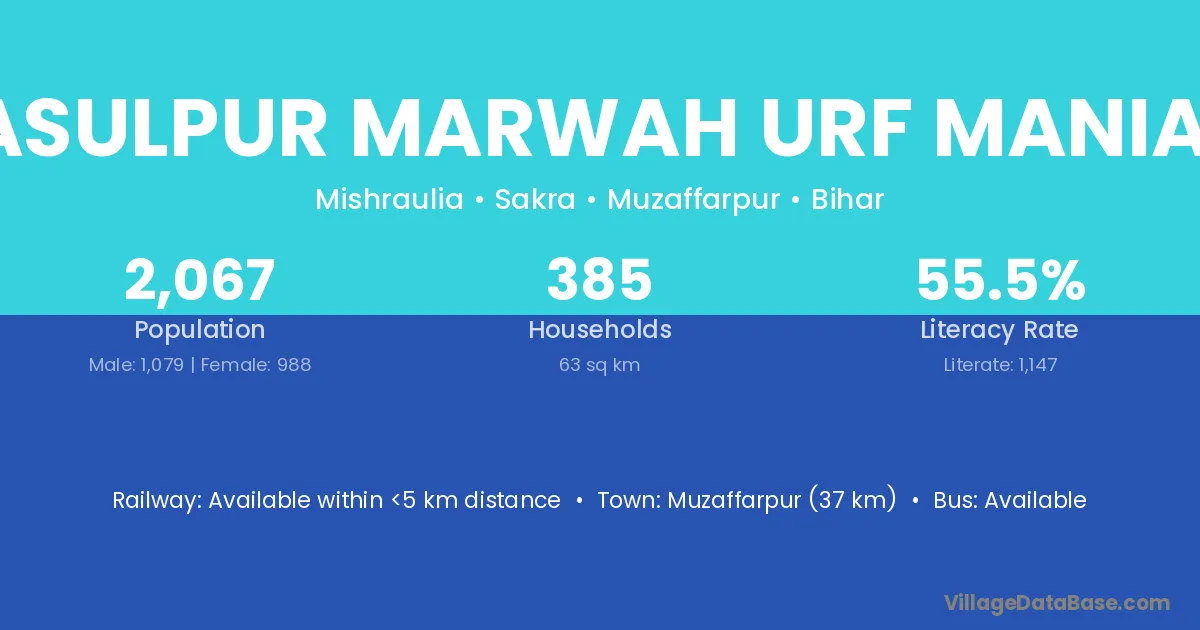 Muzaffarpur (37 km) is the nearest town to Rasulpur Marwah Urf Maniari village for major economic activities and is located approximately 37 km away.