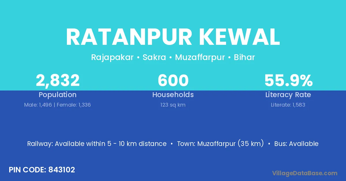 Muzaffarpur (35 km) is the nearest town to Ratanpur Kewal village for major economic activities and is located approximately 35 km away.