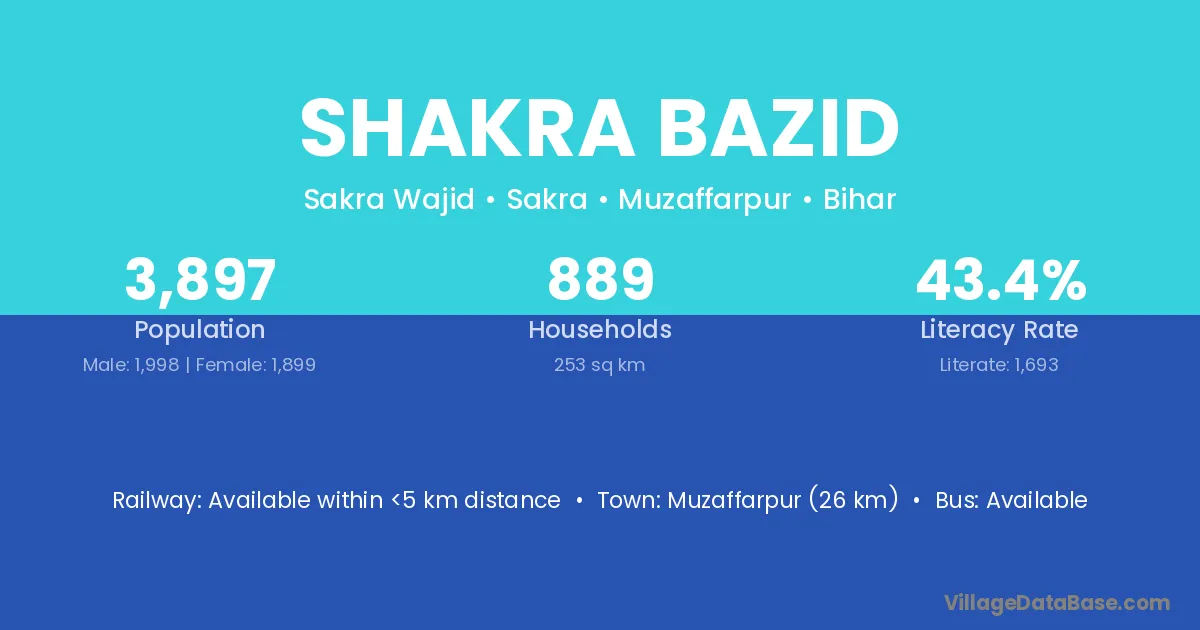 Muzaffarpur (26 km) is the nearest town to Shakra Bazid village for major economic activities and is located approximately 26 km away.