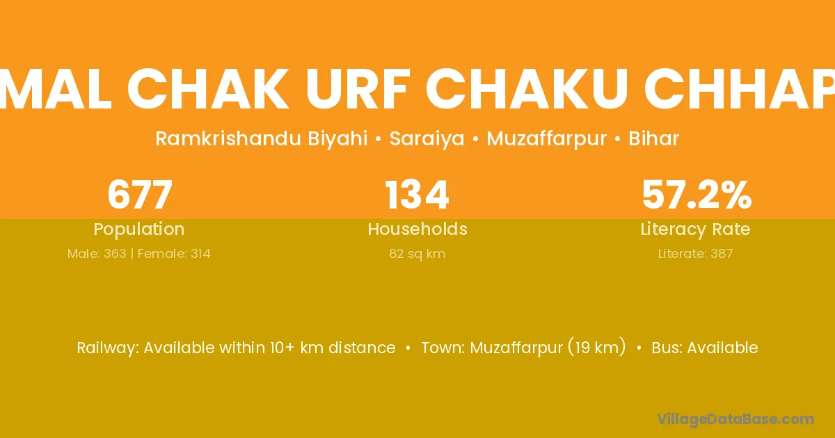 Kamal Chak Urf Chaku Chhapra village has a total population of 677 people, of which 363 are males and 314 are females.