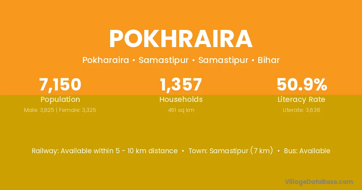 Muzaffarpur (18 km) is the nearest town to Pokhraira village for major economic activities and is located approximately 18 km away.