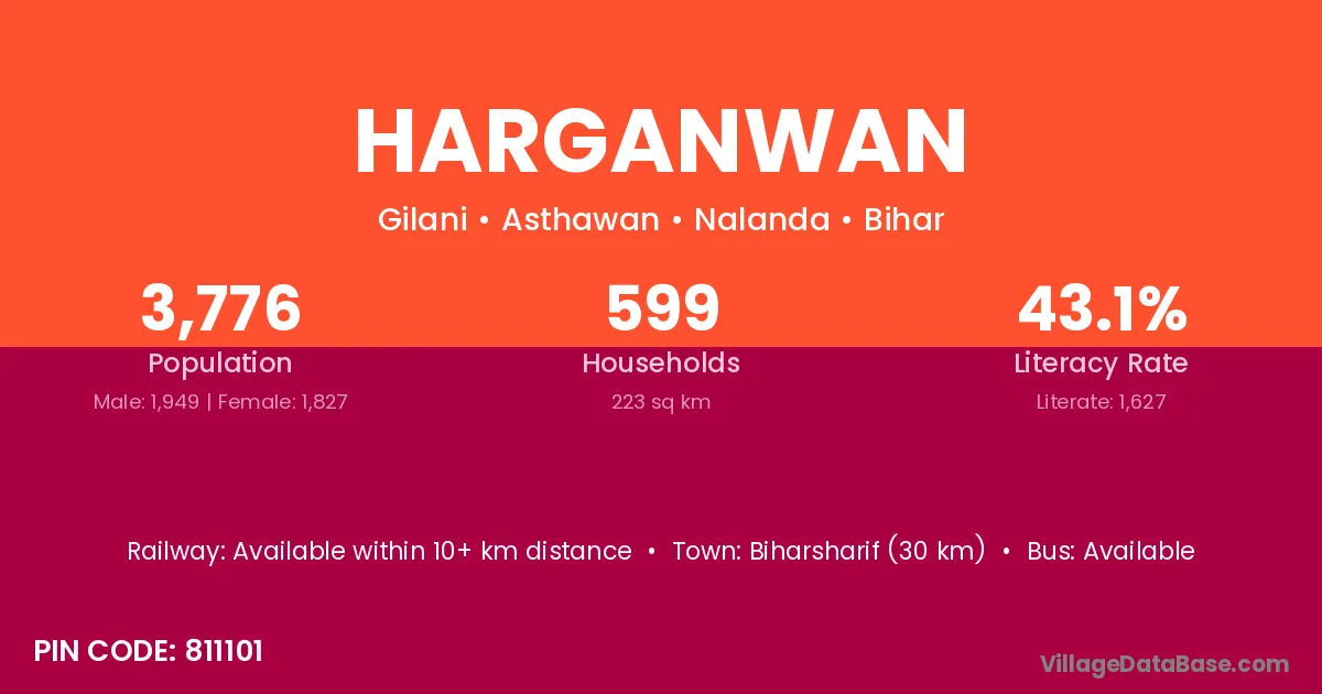 Biharsharif (30 km) is the nearest town to Harganwan village for major economic activities and is located approximately 30 km away.