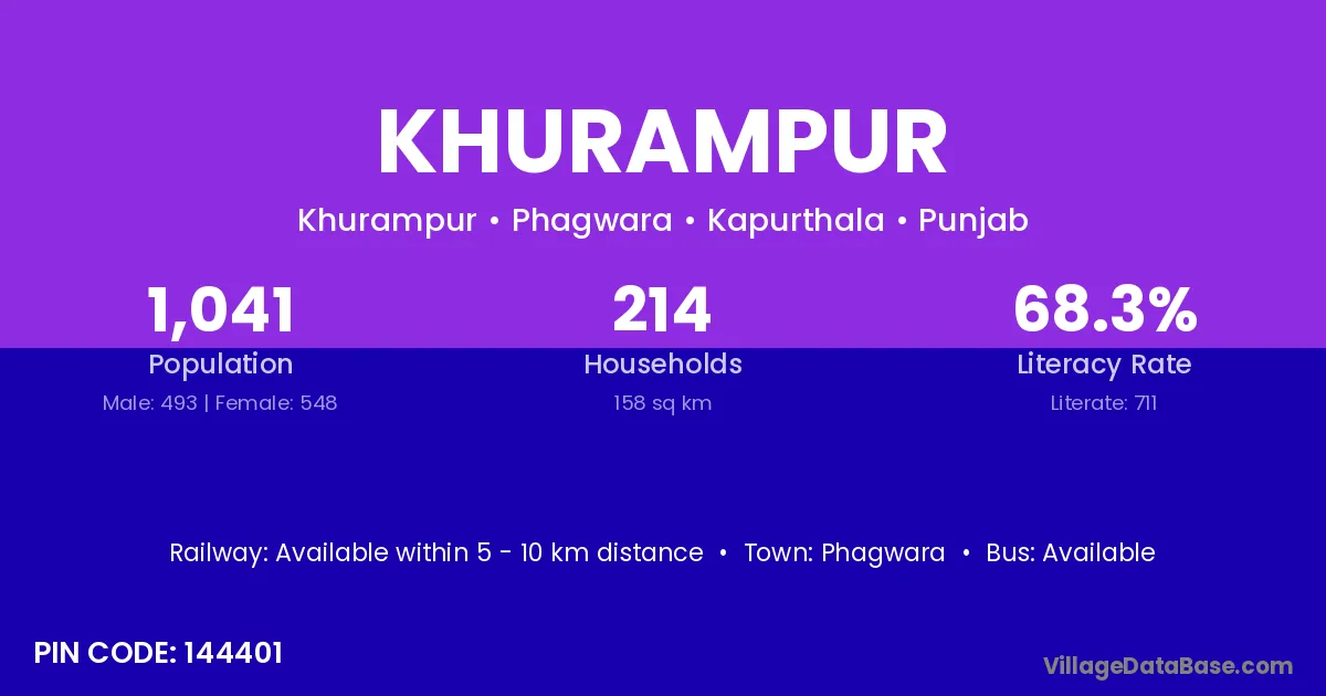 Khurampur village has a total population of 645 people, of which 336 are males and 309 are females.
