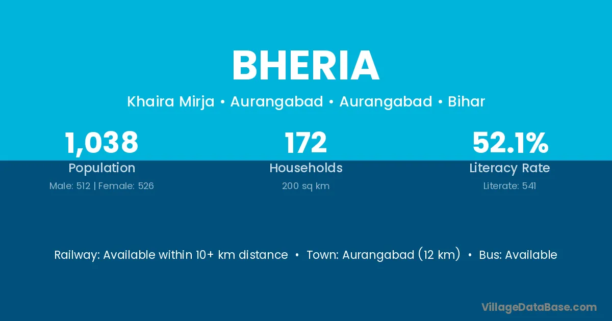 Hilsa (30 km) is the nearest town to Bheria village for major economic activities and is located approximately 30 km away.