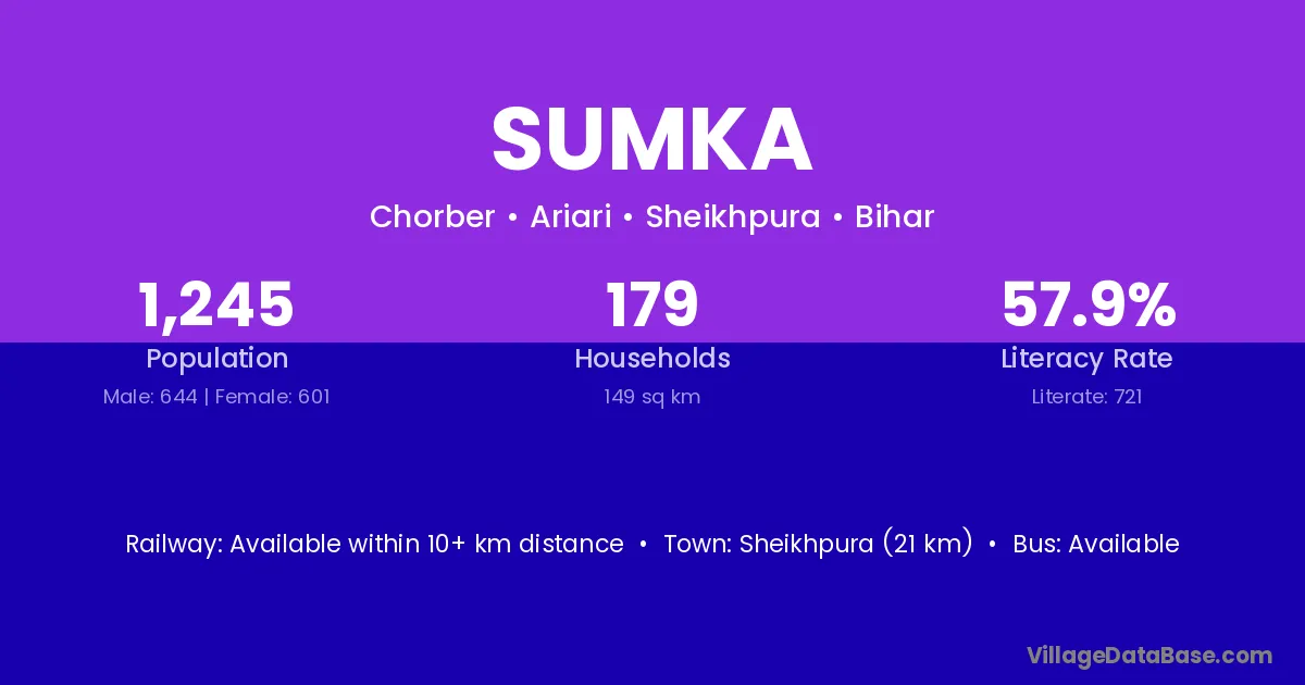Hilsa (25 km) is the nearest town to Sumka village for major economic activities and is located approximately 25 km away.