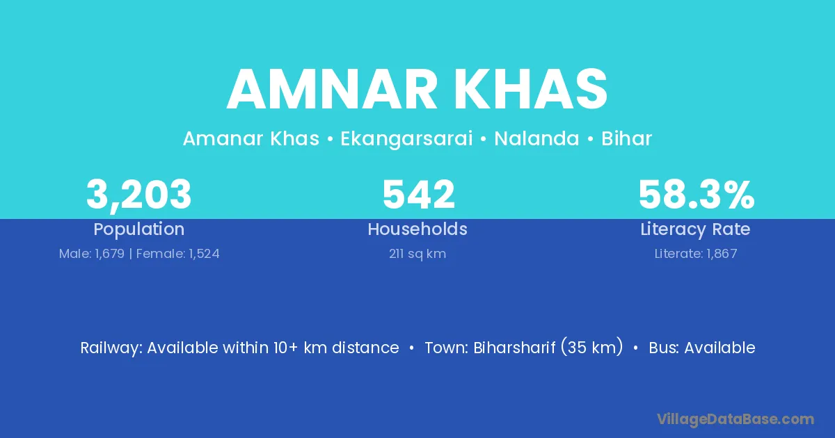 Biharsharif (35 km) is the nearest town to Amnar Khas village for major economic activities and is located approximately 35 km away.