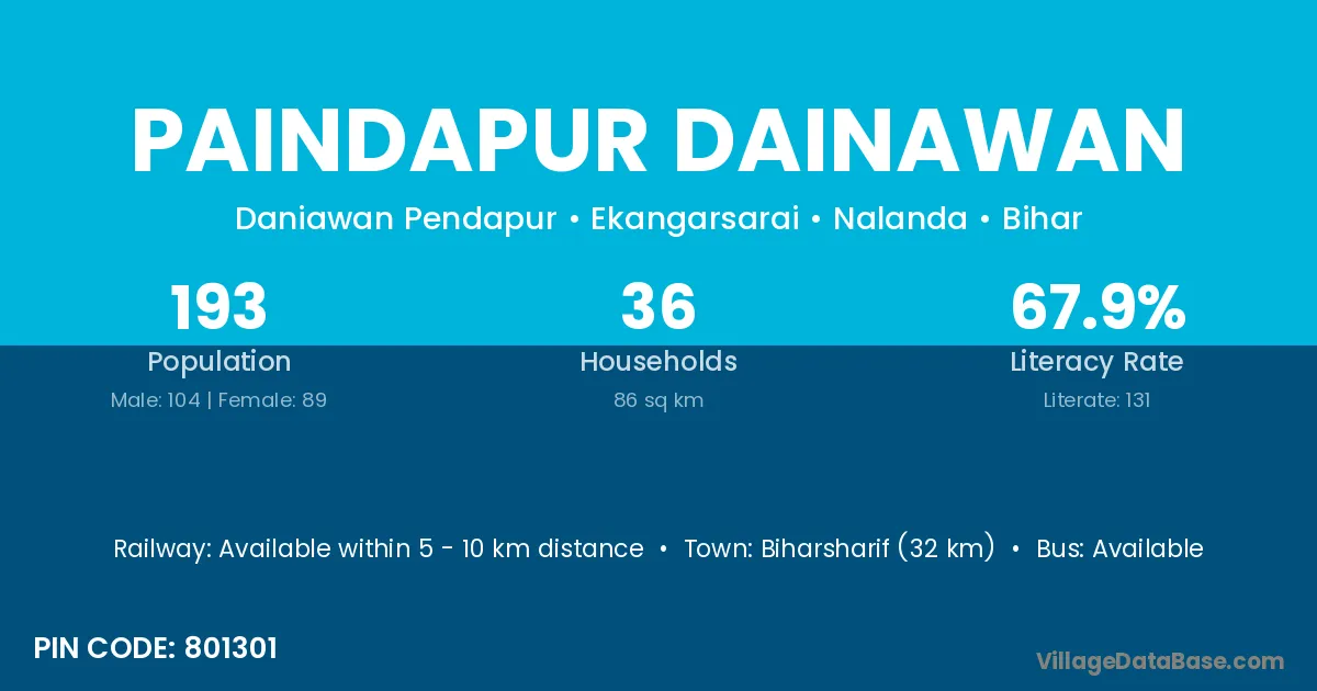 Biharsharif (32 km) is the nearest town to Paindapur Dainawan village for major economic activities and is located approximately 32 km away.