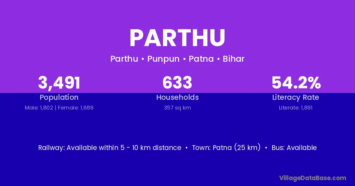 Biharsharif (35 km) is the nearest town to Parthu village for major economic activities and is located approximately 35 km away.