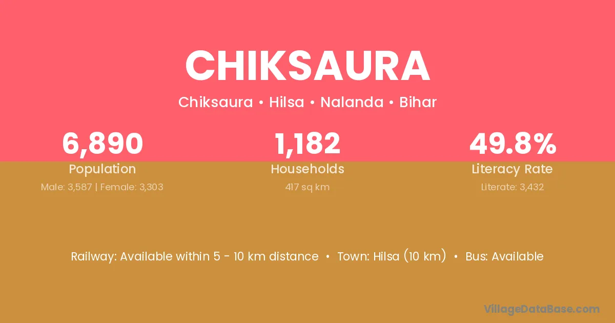 Hilsa (10 km) is the nearest town to Chiksaura village for major economic activities and is located approximately 10 km away.