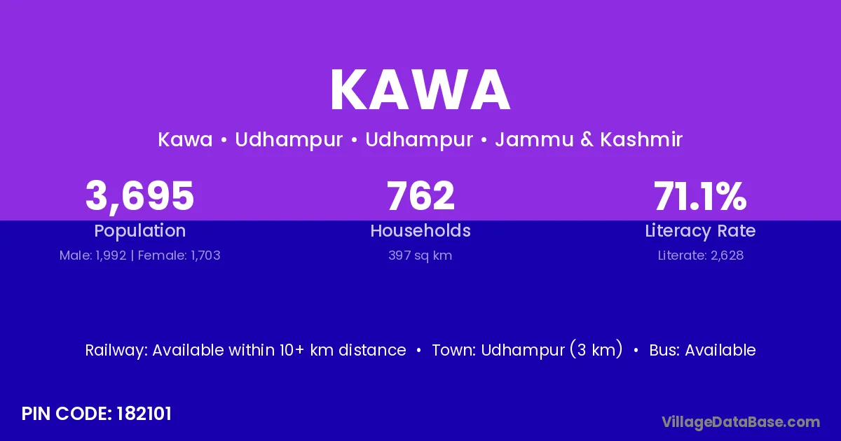 The literacy rate of Kawa village is 58.59%. Male literacy stands at 65.92% and female literacy at 50.70%.