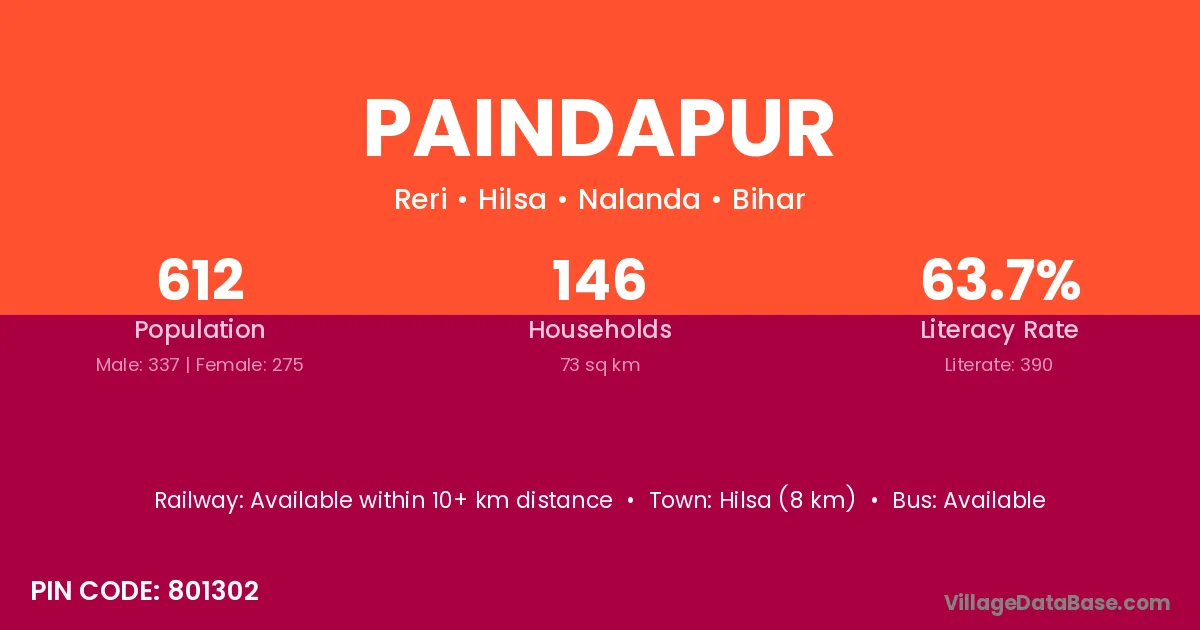 According to Census 2011 information, the village code of Paindapur village is 801302.