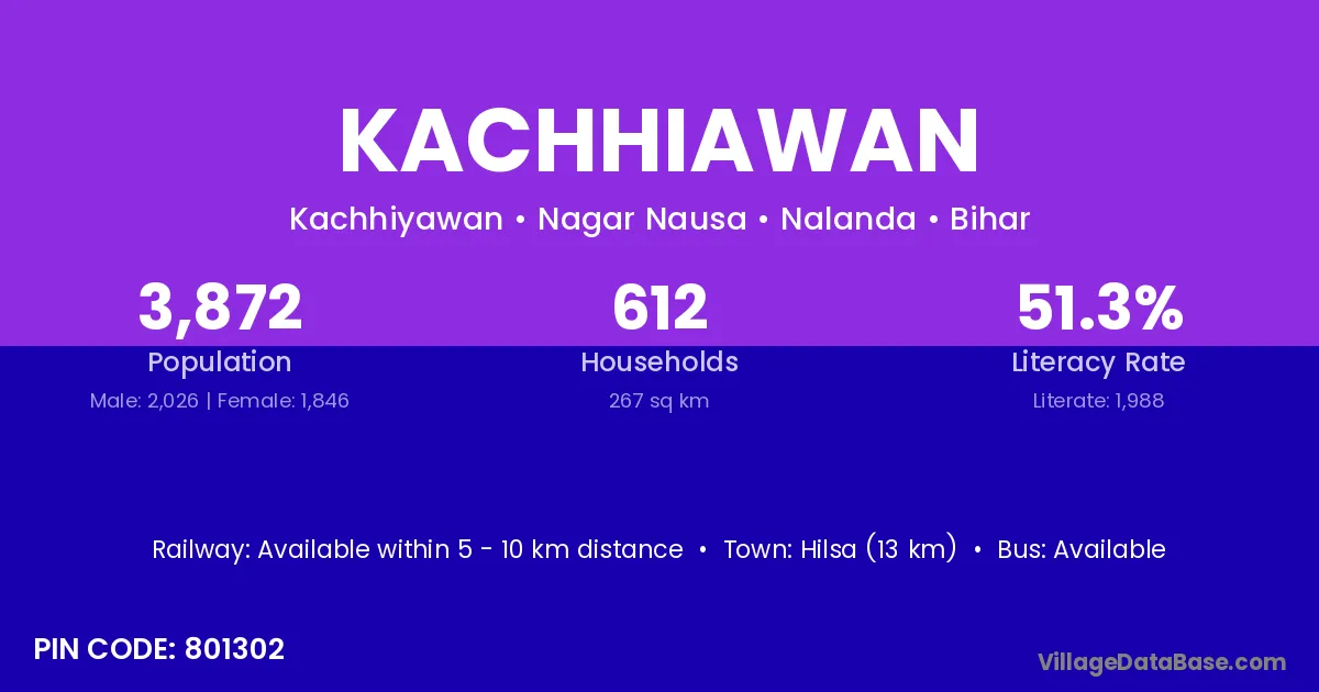 Hilsa (13 km) is the nearest town to Kachhiawan village for major economic activities and is located approximately 13 km away.