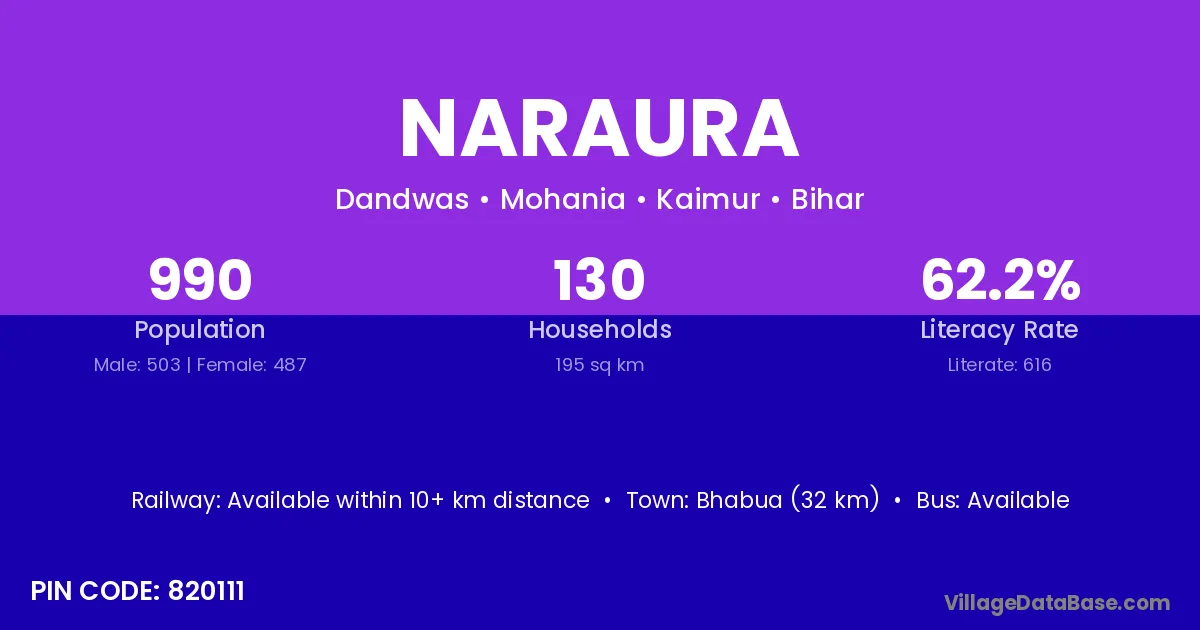 There are approximately 1,341 households in Naraura village.