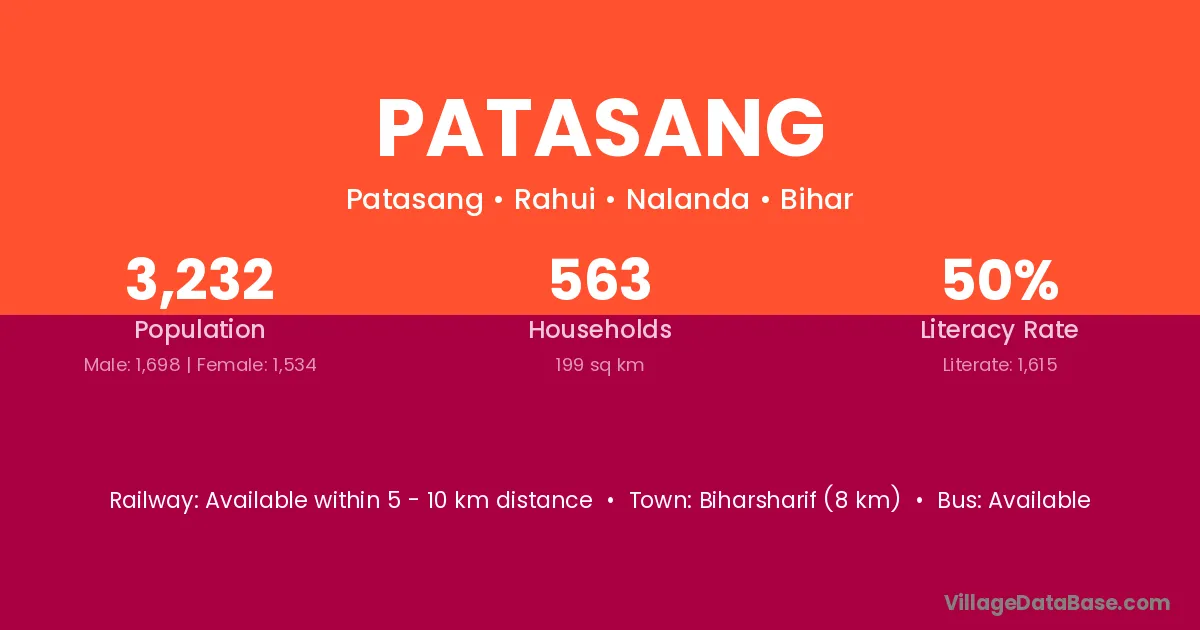Biharsharif (8 km) is the nearest town to Patasang village for major economic activities and is located approximately 8 km away.